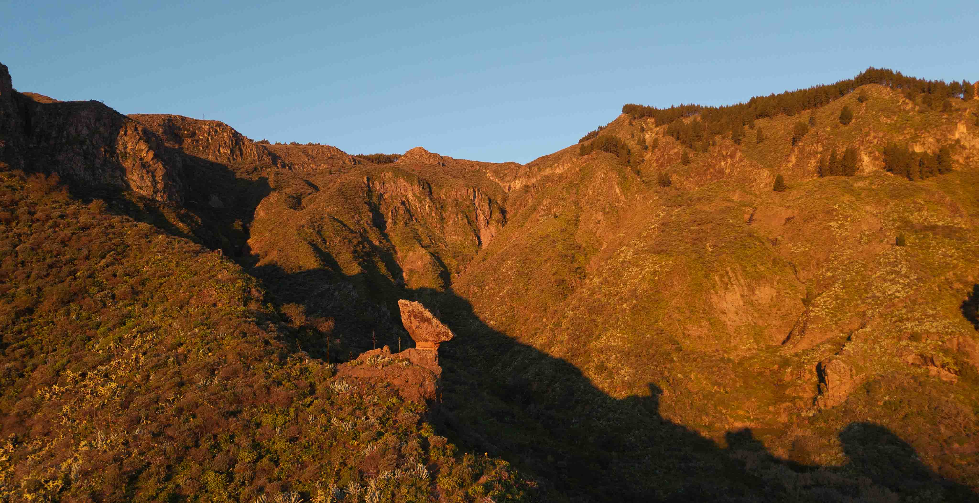 Una alternativa al clásico sendero de Los Tajinastes en Tenteniguada, con el objetivo de admirar el caprichoso equilibrio del Roque Vela, recorrer el frondoso cauce del Barranco de Tenteniguada (Barranco de La Coruña), y disfrutar de la explosión de color de los Tajinastes en Flor.