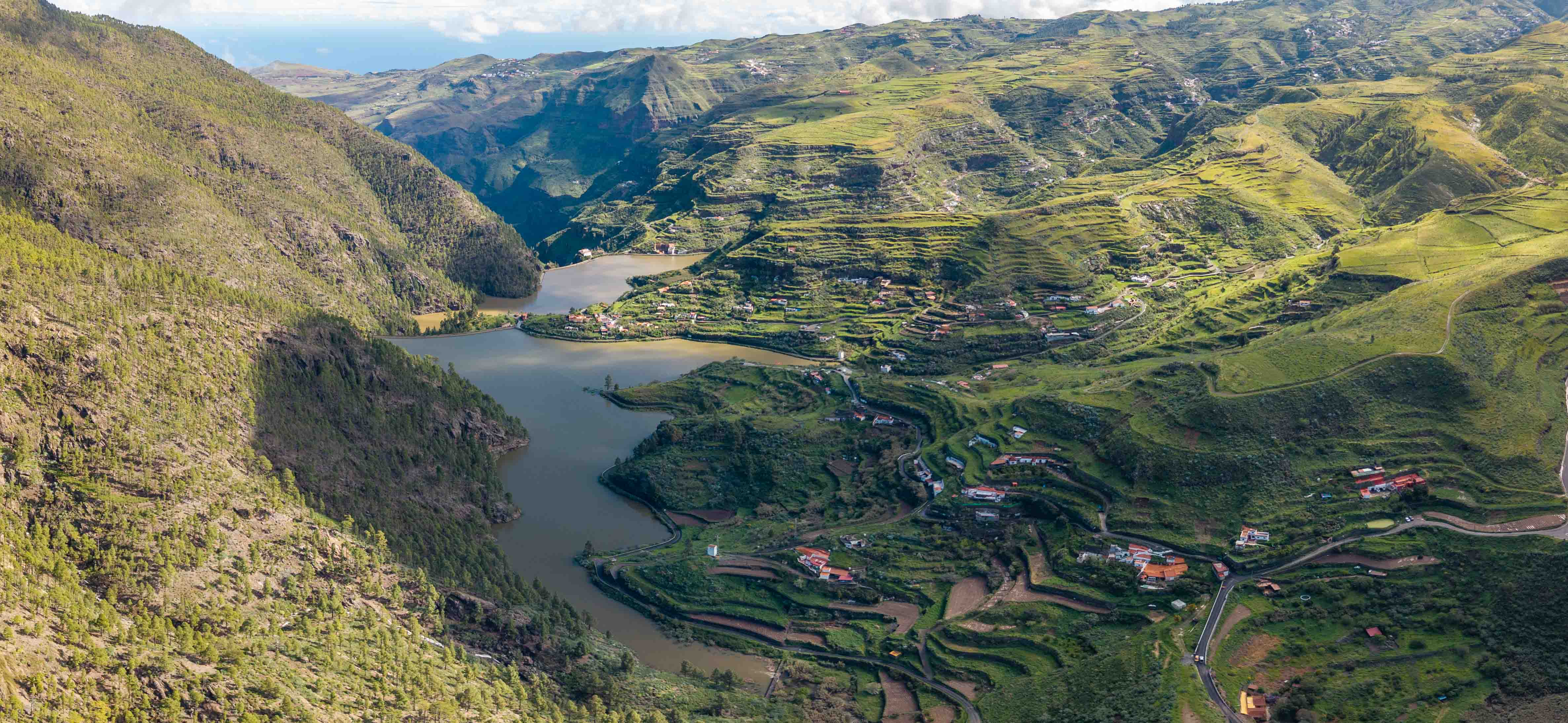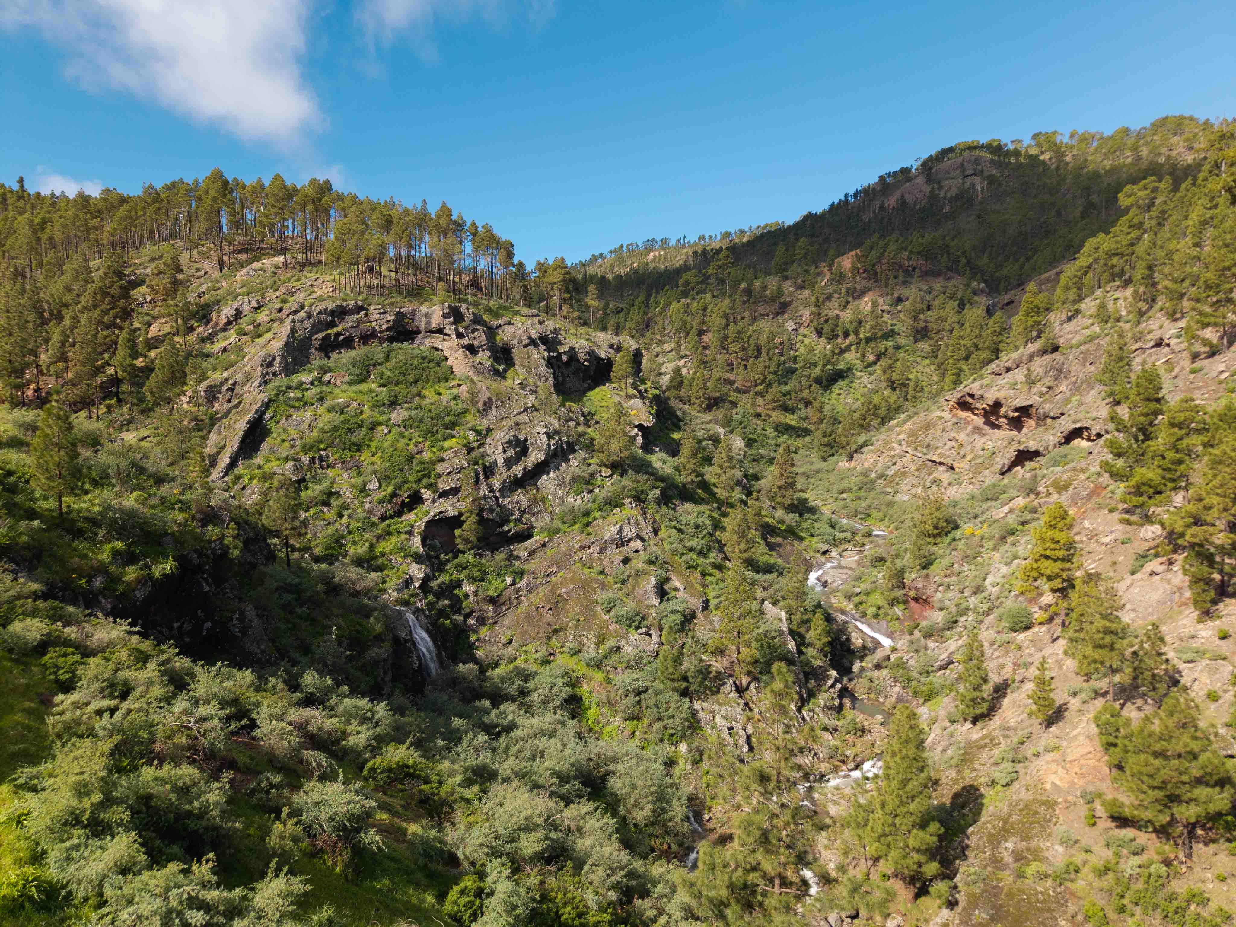 Tras las lluvias abundantes, los barrancos y cascadas de Tamadaba dan vida al paisaje y encauzan el agua hacia las presas de Las Hoyas, Lugarejos y Los Pérez.