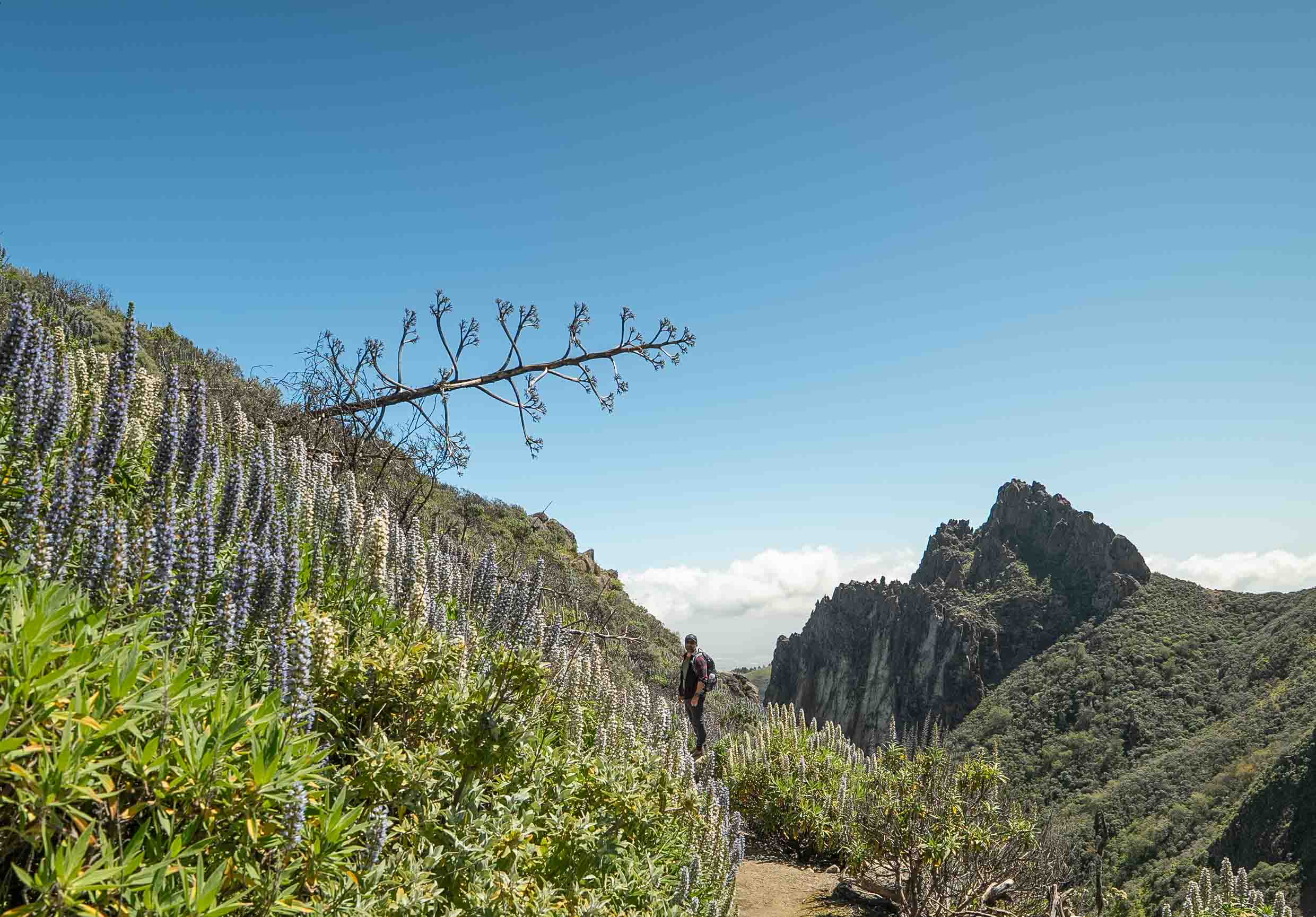Una alternativa al clásico sendero de Los Tajinastes en Tenteniguada, con el objetivo de admirar el caprichoso equilibrio del Roque Vela, recorrer el frondoso cauce del Barranco de Tenteniguada (Barranco de La Coruña), y disfrutar de la explosión de color de los Tajinastes en Flor.